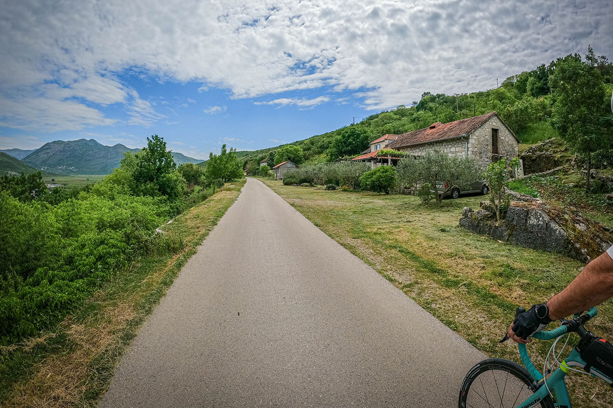 Vanuit Hutovo egaliseert het pad en biedt het een ontspannen rit door een landelijk landschap. Je fietst door rustige dorpjes, langs verlaten stenen huizen, en verschillende historische Ćiro treinstations, allemaal met een weids uitzicht over het brede en mysterieuze Popovo Polje.